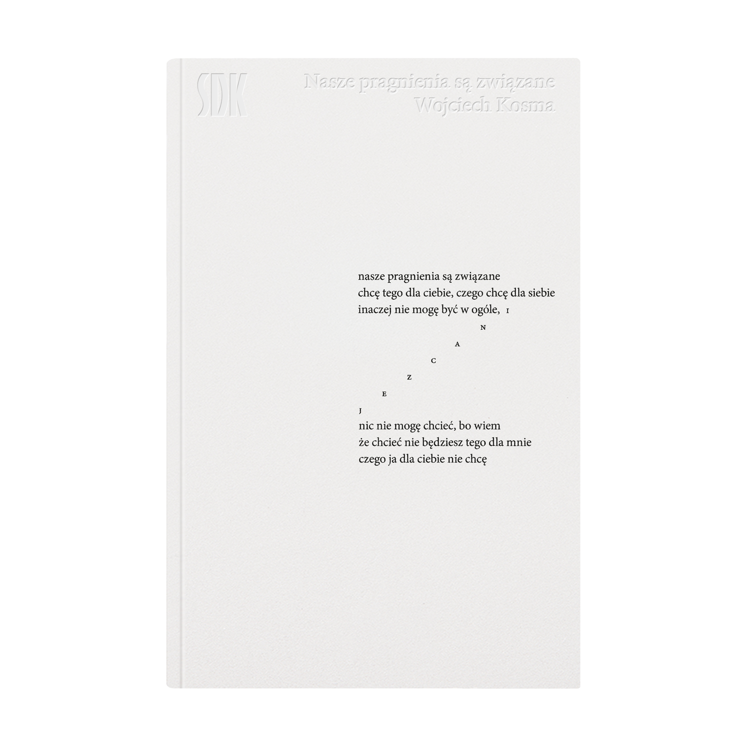 Piszę wiersze, by mówić je na głos. To je upraszcza, uściśla, ale też „uprawdziwia”. Nie potrafię, zwłaszcza publicznie, dzielić się czymś, w co nie wierzę. Chcąc przejąć powiedzenie „kto śpiewa, modli się dwa razy” — śpiewam wiersze albo nawet pozwalam im, żeby śpiewały się same. W najpiękniejszych piosenkach prawie nie ma miejsca na język, melodia sama wybiera słowa. „Nasze pragnienia są związane” to zapis mojego mówienia na głos, słuchania, ulegania głosowi, oddawania go, a wreszcie — w samym środku lasu, miasta, uczucia — cichego, czułego nucenia. / Wojciech Kosma